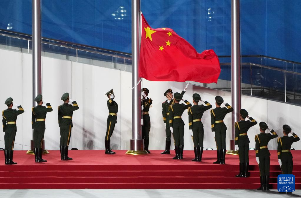這是11月21日拍攝的閉幕式上的升國旗儀式。