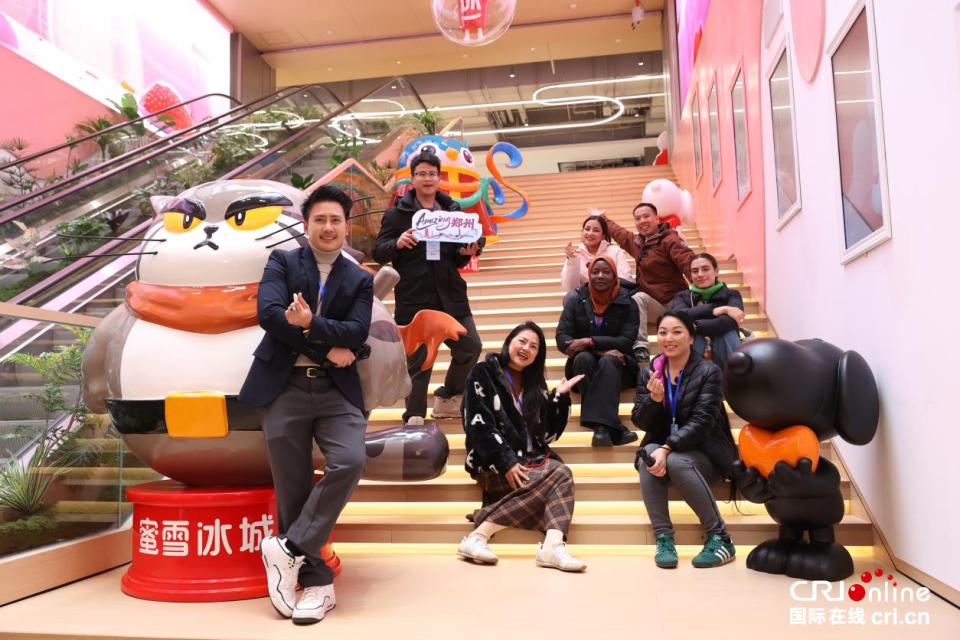 老撾網紅王偉(右四)與網紅博主打卡鄭州中歐班列集結調度指揮中心
