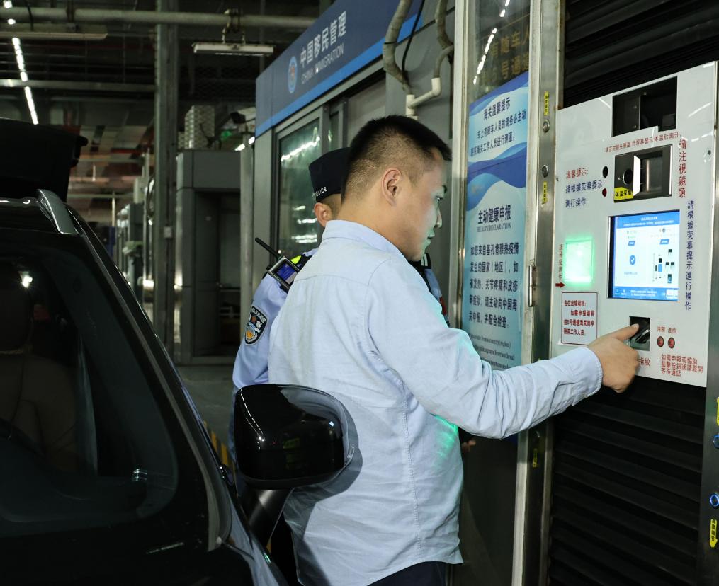 11月15日零時,“粵車南下”首位通關車主周先生在“一站式”通道辦理通關手續。新華社記者 黃國保 攝