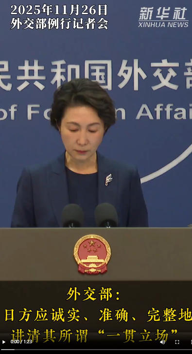 當日例行記者會上,有記者問:11月25日,針對日本政府對“存亡危機”的認定標準是否維持不變,日本政府內閣決議通過答辯書,稱日本首相高市早苗的國會答辯“不改變日本政府的一貫立場”,強調“政府將根據事態的具體情況,綜合判斷所有信息”“政府立場完全維持不變,沒有修訂和再研究的必要”。答辯書還稱,臺灣海峽的和平穩定對日本的安全保障和國際社會整體的穩定非常重要,期待通過對話和平解決問題。中方對此有何評論?