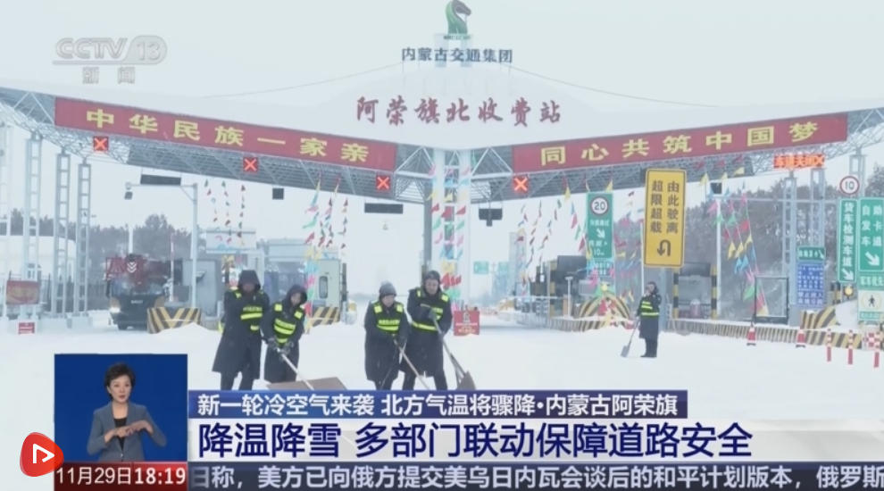 央視網消息:11月29日,內蒙古東部部分地區迎來降溫降雪天氣,其中呼倫貝爾市阿榮旗最大累計降雪量出現在三岔河鎮,降雪量為6.1毫米,當地多部門迅速啟動應急響應,聯動開展除雪保暢工作。
