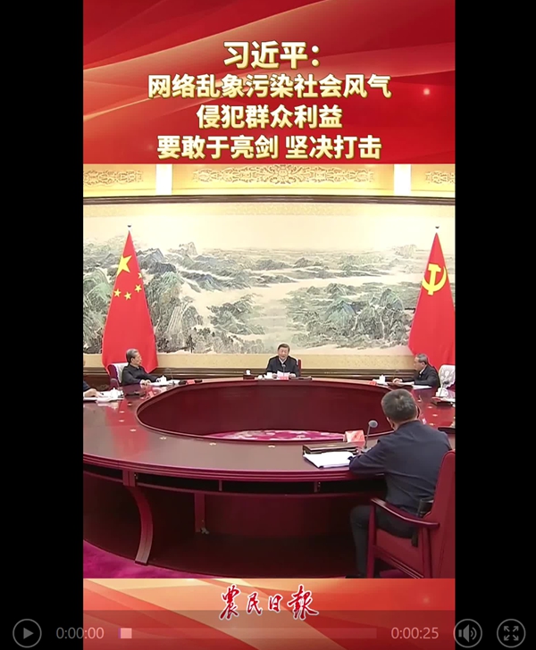 習近平:網(wǎng)絡亂象污染社會風氣 侵犯群眾利益 要敢于亮劍 堅決打擊