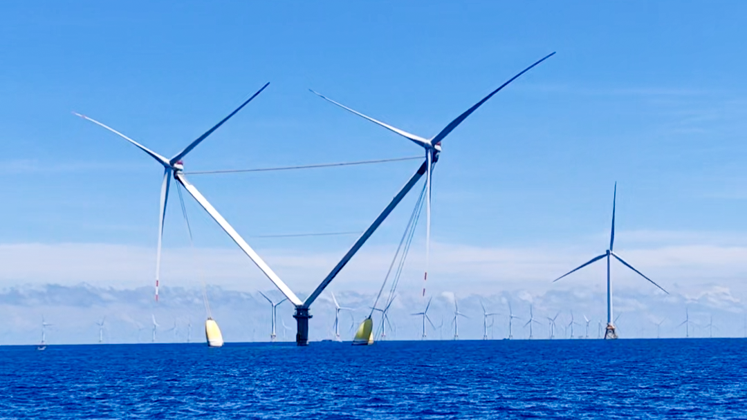 在廣東西南沿海,“明陽(yáng)天成號(hào)”漂浮式風(fēng)電平臺(tái)以穩(wěn)固的三角結(jié)構(gòu)屹立于碧波之上。一座座風(fēng)機(jī)如海上巨人,迎風(fēng)展臂,將海風(fēng)之力轉(zhuǎn)化為清潔電能,通過(guò)海底電纜送往遠(yuǎn)方。三角,是支撐,是延伸,更是海洋能源夢(mèng)想的幾何表達(dá)。