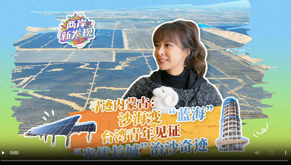 兩岸新發現,內蒙古新體驗!在內蒙古自治區鄂爾多斯市達拉特旗光伏領跑者基地,一片片藍色的光伏板如海洋般鋪展,構成了一道阻沙固土的“光伏長城”,實現了沙漠增綠、產業升級、富農增收,成為黃河“幾字彎”生態治理、經濟發展的堅實屏障。臺灣青年演員姬天語將帶你走進“光伏長城”防沙治沙新場景,見證“光伏+治沙”模式推進荒漠化治理的奇跡。