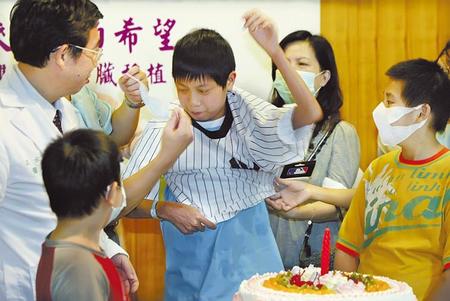 臺大醫院為陳小弟(中)慶祝重生(臺灣《中國時報》圖片)