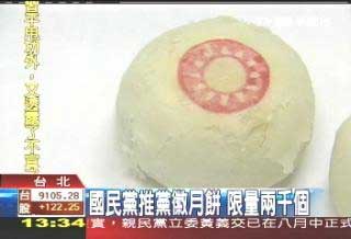 臺灣TVBS的報道說,國民黨的這場中秋晚會,除了黨內的人氣天王到場,還有一個小小的紀念品——黨徽月餅?拷c看,上面的紅色裝飾就是國民黨黨徽,切開來,內餡是綠豆,選擇簡單樸實的綠豆椪,限量推出2000個,只在中秋晚會現場發放。