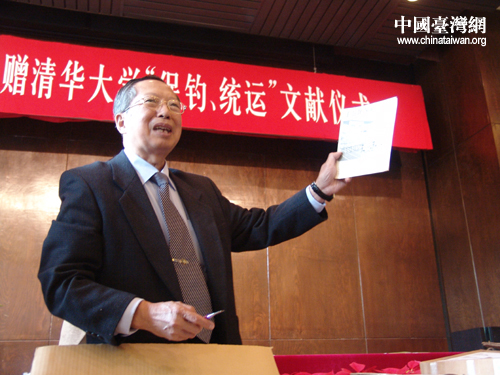 全國政協副主席張克輝以及部分在京參加過當年“保釣、統運”的臺籍人士參加了捐贈儀式。(江洪凌)
