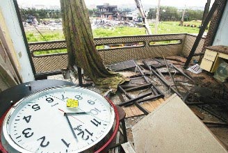 苗栗縣后龍鎮(zhèn)地下爆竹廠昨天爆炸,工廠60米外的一戶民宅,屋頂門窗全毀,屋內時鐘還停留在爆炸發(fā)生時的10時3分。《聯(lián)合報》記者陳易辰攝