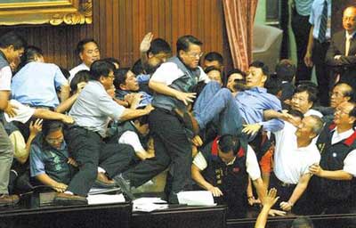 資料圖:藍營提的“中選會組織法”草案,過去多次因綠營霸占主席臺阻擋而未能表決。