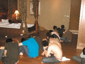檢警鎖定汽車旅館兩間房間,進入房內立刻聽到震耳欲聾的電音音樂,屋內燈光昏暗,24名男女中,多數男性已“High”到脫衣半身赤裸,有的脫到只剩一條內褲,檢警懷疑有雜交,但24人都否認。