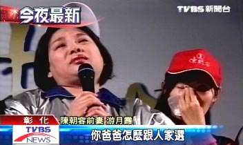 自行參選的“立委”陳朝容,找來前妻游月霞上臺助選,來源:臺灣TVBS