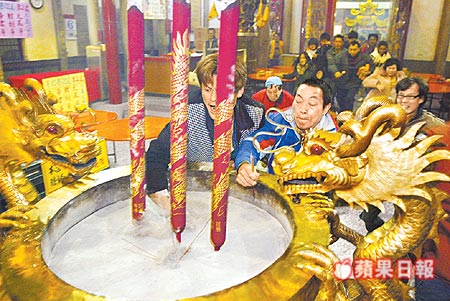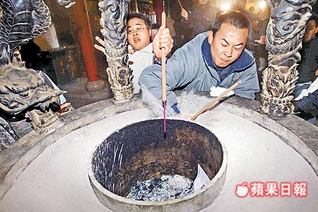 臺(tái)中市南天宮涌進(jìn)500人搶頭香。(以上圖片來源:蘋果日?qǐng)?bào))