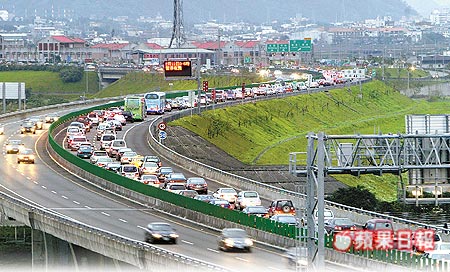 春節(jié)期間,臺灣雪山隧道天天塞爆。(蘋果日報圖)