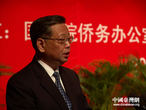 國務院僑務辦公室主任李海峰在開幕式上致辭。她說,無論是中華民族移民臺灣的歷史,還是現存民間的萬種家譜,都記載著臺灣同胞和祖國大陸特別是海峽西岸之間廣泛而密切的血緣親情關系。今天,雖然兩岸尚未統一,但大陸和臺灣同屬一個中國的事實從未改變。這是任何人也無法否認的歷史事實。令人痛心的是,在兩岸同胞一心求和平、求穩定、求發展,希望共同建設美好家園的今天,竟有那么一些人,為一黨一己之私,刻意歪曲臺灣同胞愛國愛鄉的情懷和當家作主的意愿,變本加厲地從事“去中國化”、“文化臺獨”、“法理臺獨”等分裂活動,企圖以此挑起兩岸沖突,欺騙民眾,騙取選票,實現“臺獨”分裂圖謀。這一嚴重危害兩岸關系和平發展的行徑,理所當然引起了兩岸同胞和廣大海外僑胞的強烈反對。我們高興地看到,廣大海外僑胞、港澳同胞長期以來一直高度關注臺海局勢的發展和兩岸關系的前景,充分發揮獨特優勢和影響,積極開展各種形式的“反獨促統”活動,表達他們期盼中國早日實現完全統一的真誠愿望和強烈訴求。
