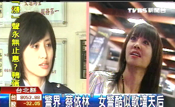 據(jù)臺灣TVBS電視臺報道,雖然使出擒拿術(shù)對付色狼,或是逮捕持有刀械的歹徒,26歲的女警蔡宜蒨都很專業(yè),但她亮眼俏麗的外表,更讓她迅速爆紅,直挺的鼻子、微厚的嘴唇,尤其是笑開來,跟蔡依林還真的極為相似,甚至被學長們昵稱是“警界的蔡依林”。