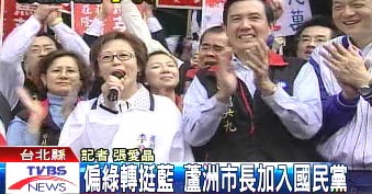 中國(guó)臺(tái)灣網(wǎng)3月15日消息 據(jù)臺(tái)灣“中央社”報(bào)道,從政22年以來(lái)且有些偏綠的無(wú)黨籍蘆洲市長(zhǎng)李翁月娥,今天決定投藍(lán),下午在國(guó)民黨2008候選人馬英九陪同下宣布加入國(guó)民黨。
