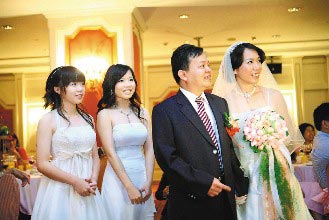 臺中市民莊曜禮(右二)和兩個女兒為妻子劉秀苓(右一)籌備一場“不讓新娘知道的婚禮”,給妻子大驚喜。來源:臺灣《聯合報》