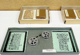 美國斯坦福大學胡佛研究院18日公開蔣介石1946到1955年日記。圖為胡佛展出之收藏之蔣介石日記原本(圖上)及公開之微卷和影印本(圖下)。 (臺灣《聯合晚報》圖片)