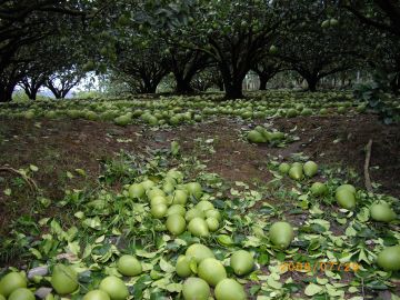 被暴雨打落的文旦柚。圖片:臺灣“中廣新聞”