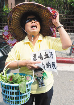 報道稱,臺灣警方表示,54歲的許希爾因不滿陳水扁洗錢,連續兩天到寶徠花園廣場抗議。昨天中午,她又裝扮成家庭主婦模樣,拎著菜籃到寶徠花園廣場,大喊“阿扁貪污啊!”“陳水扁!你羞恥!老百姓在吃苦啊!”