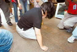臺檢方偵辦公務機要費與陳水扁家庭島外洗錢兩大案,認定前陳水扁辦公室出納陳鎮慧就是突破兩案的核心,4日陳鎮慧被約談離開時遭到大批媒體包圍,她用手捂住臉,不小心一個踉蹌摔倒在地。臺灣《中國時報》圖