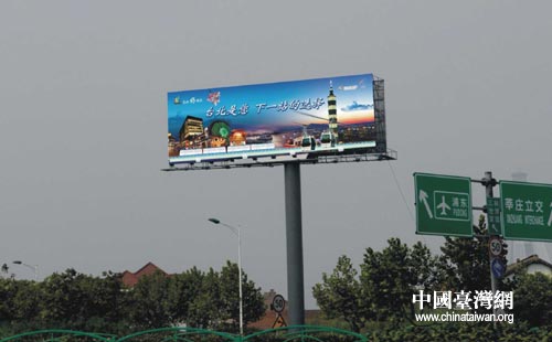 矗立在上海迎賓大道與濟(jì)陽(yáng)路口的兩塊廣告牌,精彩地呈現(xiàn)了101大樓、美麗華摩天輪、貓空纜車等臺(tái)北知名景點(diǎn)地標(biāo)的色彩繽紛,展現(xiàn)了魅力臺(tái)北、風(fēng)華萬(wàn)千的百變之姿。有意思的是,往浦東機(jī)場(chǎng)方向的廣告寫(xiě)的是“臺(tái)北是您下一站的選擇”,意為歡迎即將自上海離開(kāi)的民眾下一站就選擇到臺(tái)北賞游;而反方向進(jìn)入上海市區(qū)的廣告詞為“久候的臺(tái)北 您不能錯(cuò)過(guò)”,則以臺(tái)北之精彩不能錯(cuò)過(guò)為訴求,兩句廣告詞相互呼應(yīng),相得益彰。