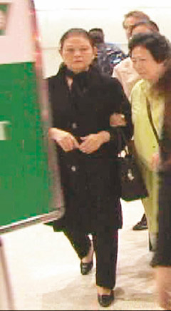 李寶珠(左)與親人忍著悲痛護(hù)送靈柩回臺