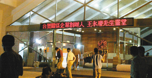 王永慶的遺體由夫人李寶珠、女兒王瑞華和女婿楊定一護(hù)送回臺,在昨天搭乘長榮航空BR031的班機(jī),今天早上抵達(dá)臺灣,隨即在桃園機(jī)場旁的長榮貨柜站舉行了簡單的誦經(jīng)儀式,因為高齡92歲辭世算是喜喪,因此現(xiàn)場布置并未全以白色為主,擺設(shè)了7千朵蝴蝶蘭,也鋪上了紅色地毯。(趙靜)