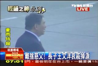 在機(jī)場迎接王永慶的家人,最受矚目的就是曾經(jīng)父子反目、被逐出家門的宏仁集團(tuán)總裁、王永慶的長子王文洋,他帶著子女前來迎靈,手上已經(jīng)別了一塊麻布,王文洋見到父親棺材那一刻,百感交集,痛哭失聲;妹妹王瑞瑜更是哭到要人攙扶,隨時會倒下。王永慶小兒子王文祥得知父親過世,也在15日晚上從洛杉磯趕回臺北奔喪。