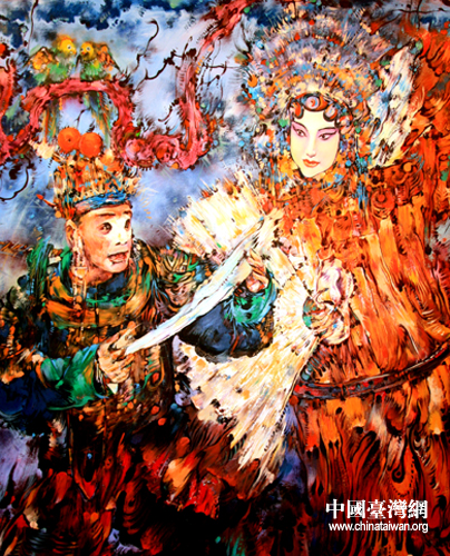 劉令華用西方繪畫在色彩方面特有的濃烈、豐富及層次感,將東方京劇人物演繹得出神入化(李徽 攝)