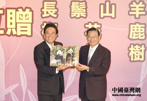 致辭后,現場觀禮來賓觀看了大熊貓、珙桐樹,長鬃山羊、梅花鹿的資料錄像。觀后,陳云林與江丙坤在兩岸眾多媒體見證下,舉行了互贈儀式。 (本網特派記者田云鵬 發自臺北)
