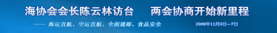在舉世矚目的“陳江會談”中,除協(xié)商達成空運、海運、郵政、食品安全四項協(xié)議外,兩會還特別于5日共同主辦了兩岸金融座談會、兩岸工商及航運座談會。陳云林說,這是他此行的兩大任務(wù)之一,希望兩岸能就如何共同面對金融海嘯的沖擊,相互合作、共度時艱交換意見;江丙坤說,兩岸業(yè)界人士、專家通過座談,找出病因并對癥下藥,其重要性不亞于4日兩會簽署的4項協(xié)議。