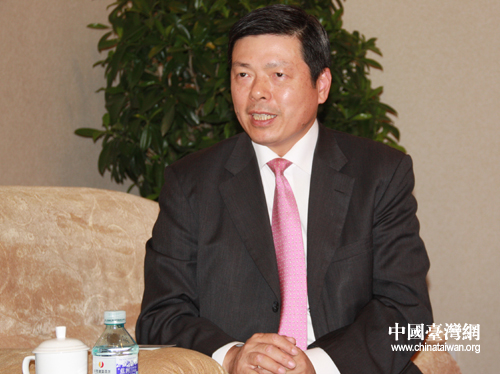 臺灣醫(yī)療服務(wù)業(yè)訪問團(tuán)榮譽(yù)團(tuán)長、臺北世界貿(mào)易中心副總經(jīng)理葉明水接受采訪。