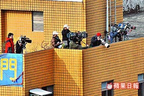 為了捕捉陳水扁放風(fēng)畫面,臺(tái)北看守所制高點(diǎn)聚集了大批記者。來源:臺(tái)灣《蘋果日?qǐng)?bào)》