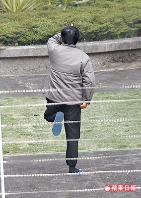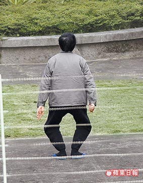 陳水扁放風(fēng)時(shí)做金雞獨(dú)立狀。來源:臺(tái)灣《蘋果日?qǐng)?bào)》