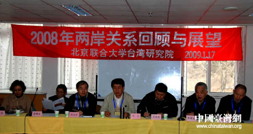 中國(guó)臺(tái)灣網(wǎng)1月19日北京消息 北京聯(lián)合大學(xué)臺(tái)灣研究院日前召開(kāi)“2008年兩岸關(guān)系回顧與展望研討會(huì)”,知名臺(tái)灣問(wèn)題專家劉紅、徐博東、黃嘉樹(shù)、郭震遠(yuǎn)、孫升亮、李延、周志懷等共聚一堂,回顧了2008年兩岸關(guān)系發(fā)展歷程,并對(duì)今后兩岸關(guān)系的發(fā)展趨勢(shì)進(jìn)行了展望。
