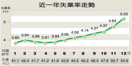 臺去年12月失業率5.03% 全年痛苦指數創27年新高