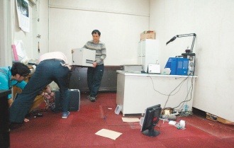 臺(tái)“立法院”紅磚樓二樓“秘書處”地板昨天塌陷,“院”方緊急封閉損壞樓層。(臺(tái)灣《聯(lián)合報(bào)》圖片)