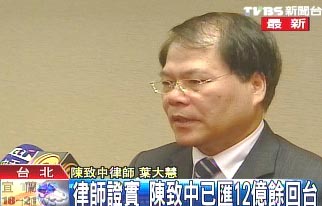 律師稱(chēng)陳致中已發(fā)文給海外銀行,要求將12億元匯回臺(tái)灣 。來(lái)源:臺(tái)灣TVBS電視臺(tái)