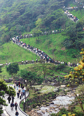中國臺灣網2月16日消息 碧綠草地上,青翠竹林彷佛滴得出水;奇石水瀑旁,人龍靜靜蜿蜒,宛如油畫。3日圓寂的臺灣法鼓山創辦人圣嚴法師骨灰昨天植存于金山環保生命園區,逾3萬名信眾繞著之字形山路前行,形成巨大壯觀的圖案,5小時后才緩緩散開。