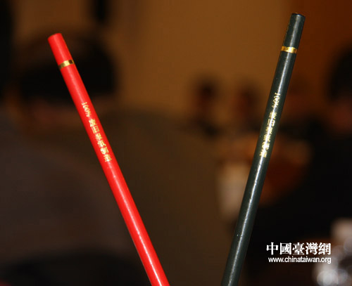 中國臺灣網3月7日北京消息 節儉是今年兩會會務的特點,在今天的臺盟臺聯聯組討論會場中,記者即發現了一個節儉辦會的小細節——委員們桌上放的每只鉛筆,筆桿上都標著這樣一行小字:100%廢舊報紙制造。