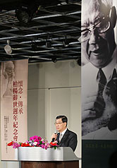 蕭萬長昨日出席已故臺灣著名作家柏楊的逝世周年紀念會,以好友身分上臺致詞。