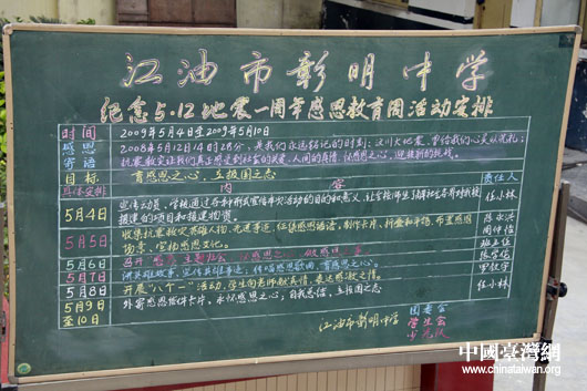 5.12地震一周年之際,彰明中學(xué)有計(jì)劃的開展感恩教育活動(dòng)。(中國臺灣網(wǎng) 鐘寶華 攝)