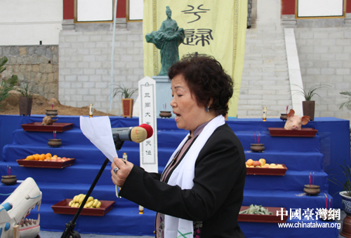 臺灣嘉賓代表在典禮上誦念祭文(中國臺灣網 焦瑩瑩 攝)