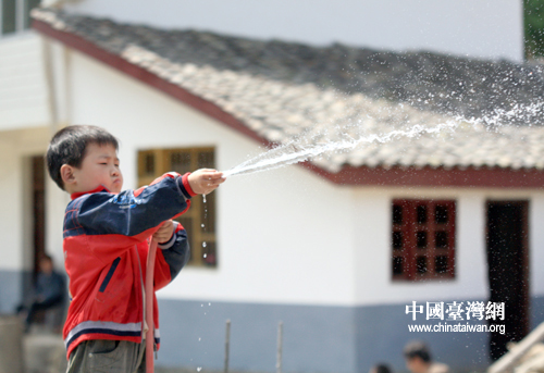 中國臺灣網5月12日青川消息 一片蔚藍天空下,5歲的尚鑫波正在聚精會神地給自家正在修建的房屋澆水,讓鋼筋混凝土結構的房體保持濕度。屋邊街道上他的父親興致勃勃地看著兒子的一舉一動,不時叮囑兒子注意安全。青川縣黃坪鄉棗樹村村民忙碌的一天就此開始。