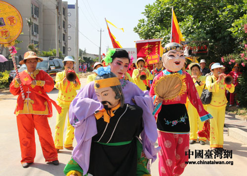 精彩的民俗踩街表演吸引了當地居民的圍觀。(中國臺灣網記者 張弛 攝)