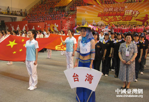 中國臺灣網5月17日泉州消息 海峽論壇·第三屆海峽巾幗健身大賽今天晚上8點在泉州僑鄉體育館隆重舉行。來自福建省9個設區市、省直機關、省個私協及臺港澳共14個代表團的1000多名女性云集美麗的花園城市泉州,盡展風采,聯誼交流,生動體現了海峽兩岸姐妹一家親的深厚情誼,充分展示了海峽兩岸姐妹熱愛生命,追求卓越的時代風采。