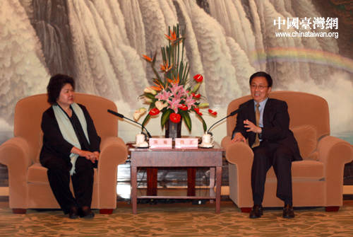 5月23日下午,上海市市長韓正在上海興國賓館會見了高雄市市長陳菊。(中國臺灣網 田云鵬 攝)