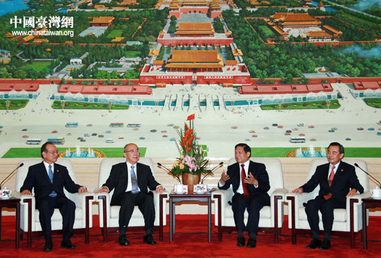 5月26日上午,北京市委書記劉淇在人民大會堂北京廳會見中國國民黨主席吳伯雄率領(lǐng)的“中國國民黨大陸訪問團(tuán)”一行。(中國臺灣網(wǎng) 鐘寶華 攝)