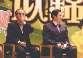 馬英九與王金平昨天聯袂參加臺南縣遠東科技大學畢業典禮,兩人相敬如賓,王金平等候上臺時,還打了個大哈欠。(圖片來源:臺灣《聯合報》)